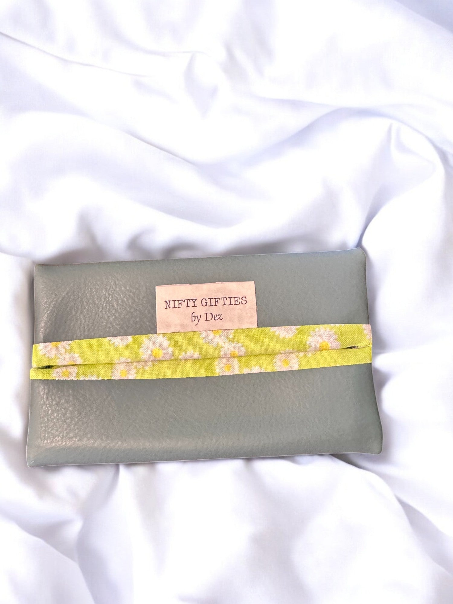 Stay prepared in style with this handmade vinyl tissue pouch, perfect for life on the go. Measuring approximately 5 x 3 inches, it’s compact enough to fit in your purse, backpack, or glove box while holding a standard travel-size tissue pack. Made from durable, wipe clean vinyl, this pouch keeps your tissues protected from spills, dirt, and lint. Each one is individually crafted by me with attention to detail and quality. Available in a variety of vibrant colors and fun patterns, these pouches add a pop of personality to a practical everyday essential. Whether you’re treating yourself or looking for a thoughtful gift, this little pouch makes a great addition to care packages, teacher gifts, stocking stuffers, or party favors. Carry tissues with convenience and charm wherever you go!